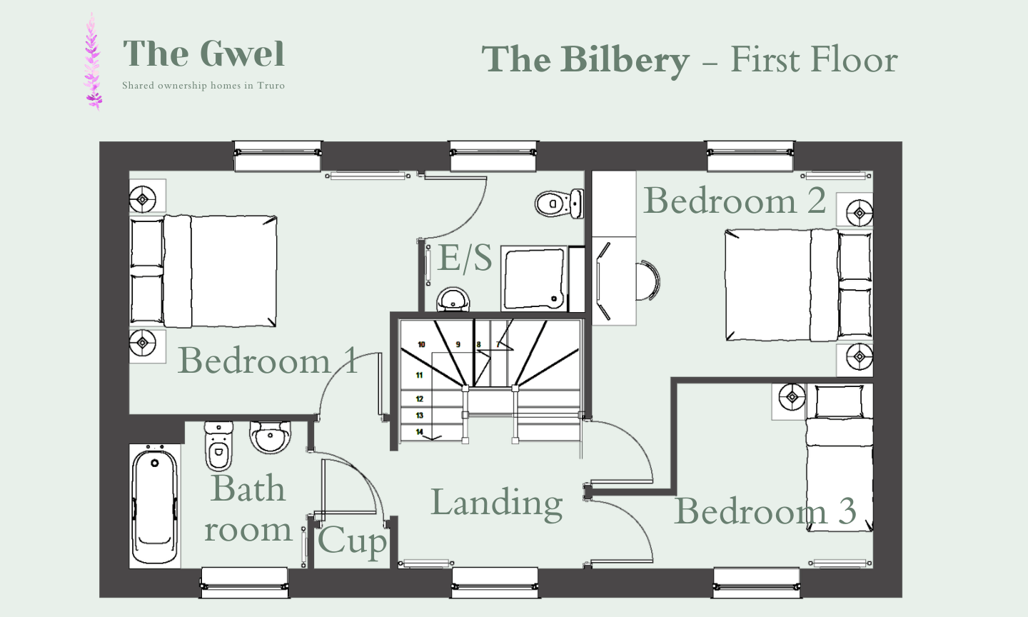 The Gwel features 10 three-bedroom homes, all equipped with an air source heat pump, a private garden and parking. Please note that some plots will have a separate lease for their parking.